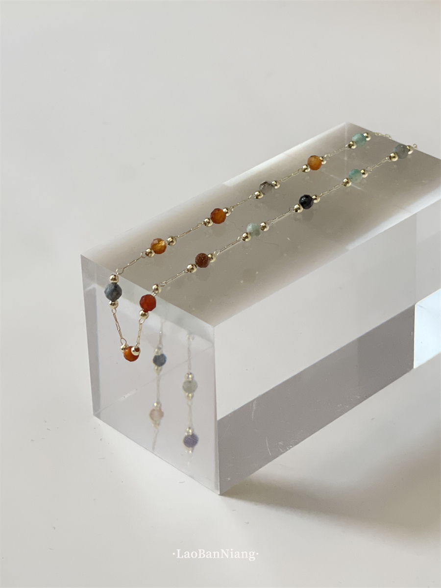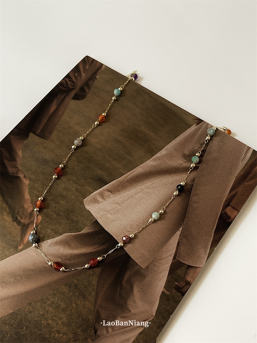 您的位置:他他商城  >  配饰  >  可做叠戴的彩色琉璃项链极细锁骨链轻奢重工简约百搭颈链15918