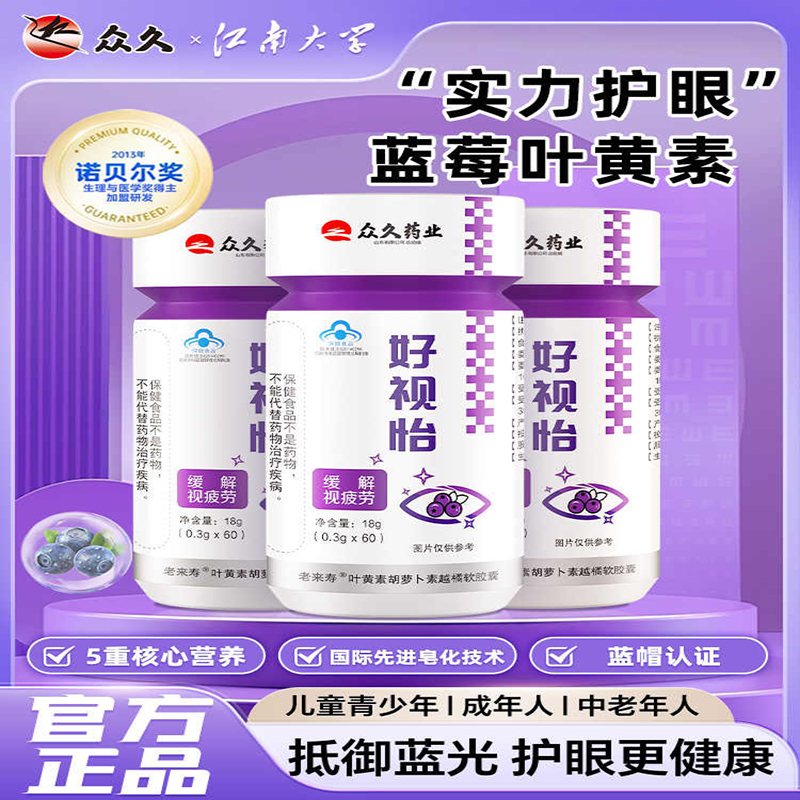 众久药业好视怡护眼胶囊佐宁牌叶黄素胡萝卜素越橘软胶囊官方正品 - 俄罗斯原装进口工厂店同韵堂寒安堂压片糖果
