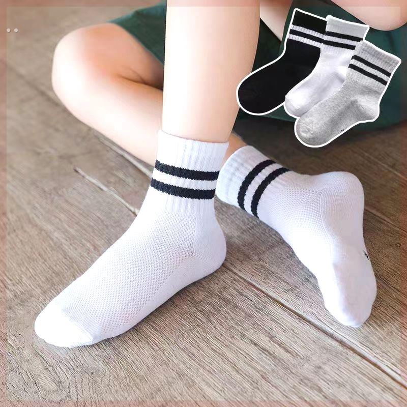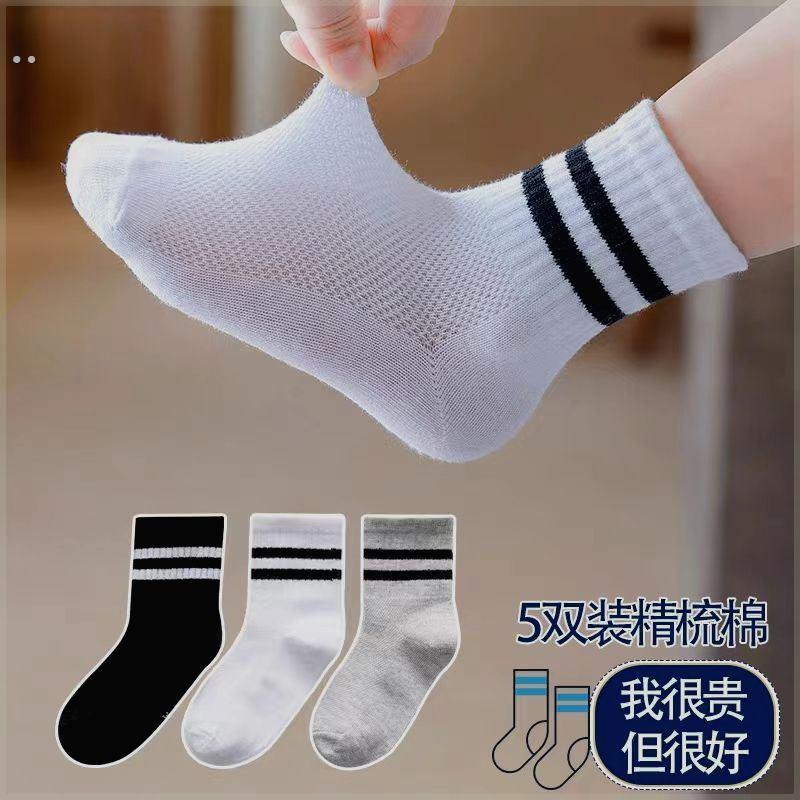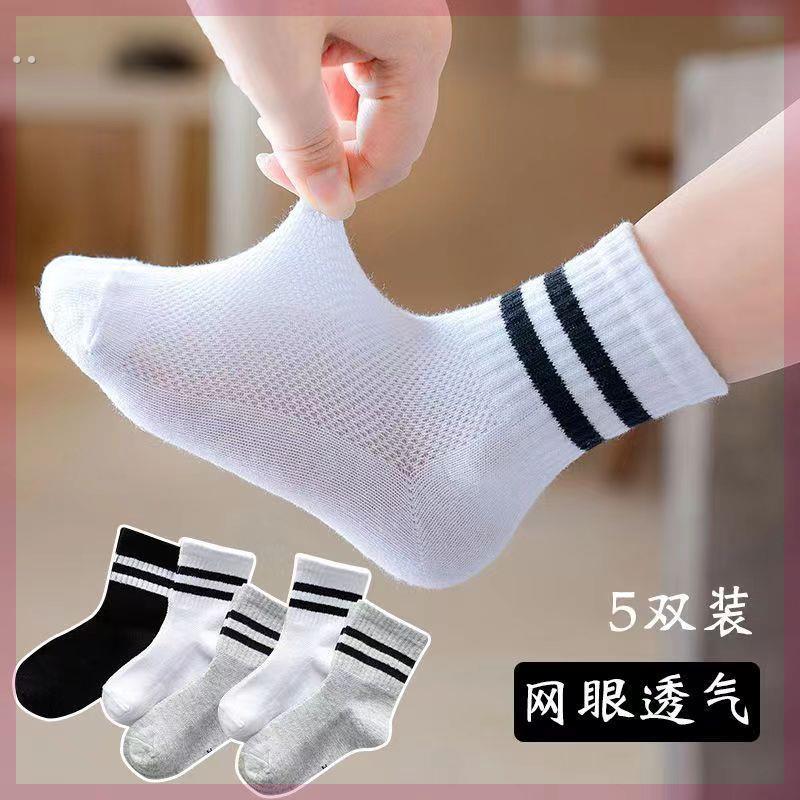儿童袜子夏天薄款纯棉中筒袜男童小童宝宝网眼运动袜学院学生袜潮