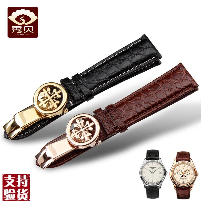 原装适配鳄鱼皮真皮表带男适配PP翡丽蝴蝶扣19202122mm男表链 - 喜洋洋百货企业店