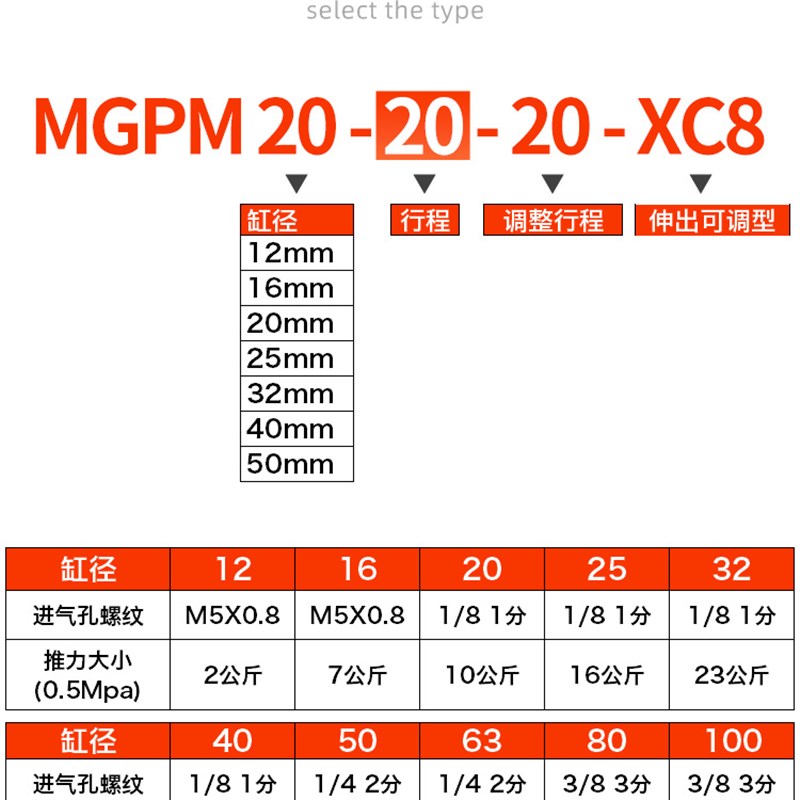 星辰行程可调节带导杆气缸三杆TCMJ/MGPM12/20/25/40/32*50/16-30 - 安尛颜商城