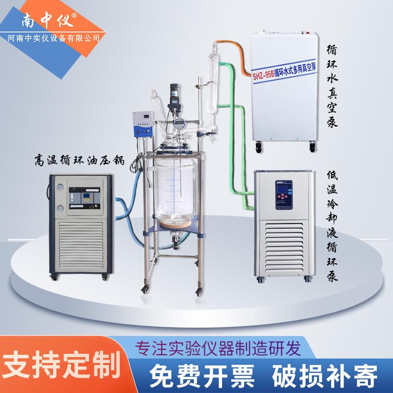 中实仪双层玻璃反应釜高硼硅防腐真空蒸馏生物合成化学夹套反应器