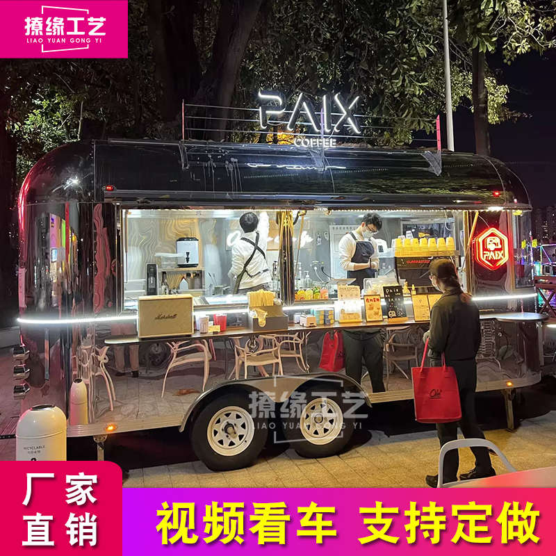 商用拖挂式可移动餐车奶茶咖啡油炸鸡排烧烤炸串麻辣烫美食小吃车 - 小客工厂店