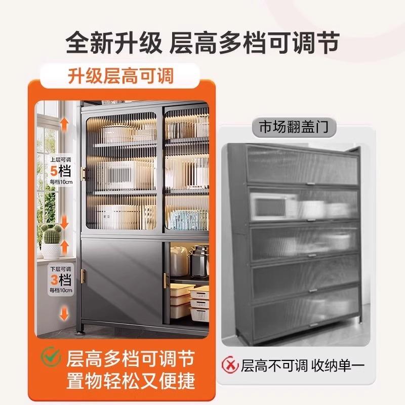 厨房置物架多功能落地柜推拉门多层餐边柜家用锅具碗碟收纳储物柜 - 之泉百货官营店