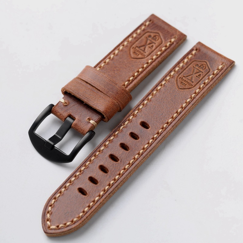 手工头层牛皮表带复古真皮20 22 23 24mm适配铜表真皮男真皮表链 - 迷彩户外风尚店