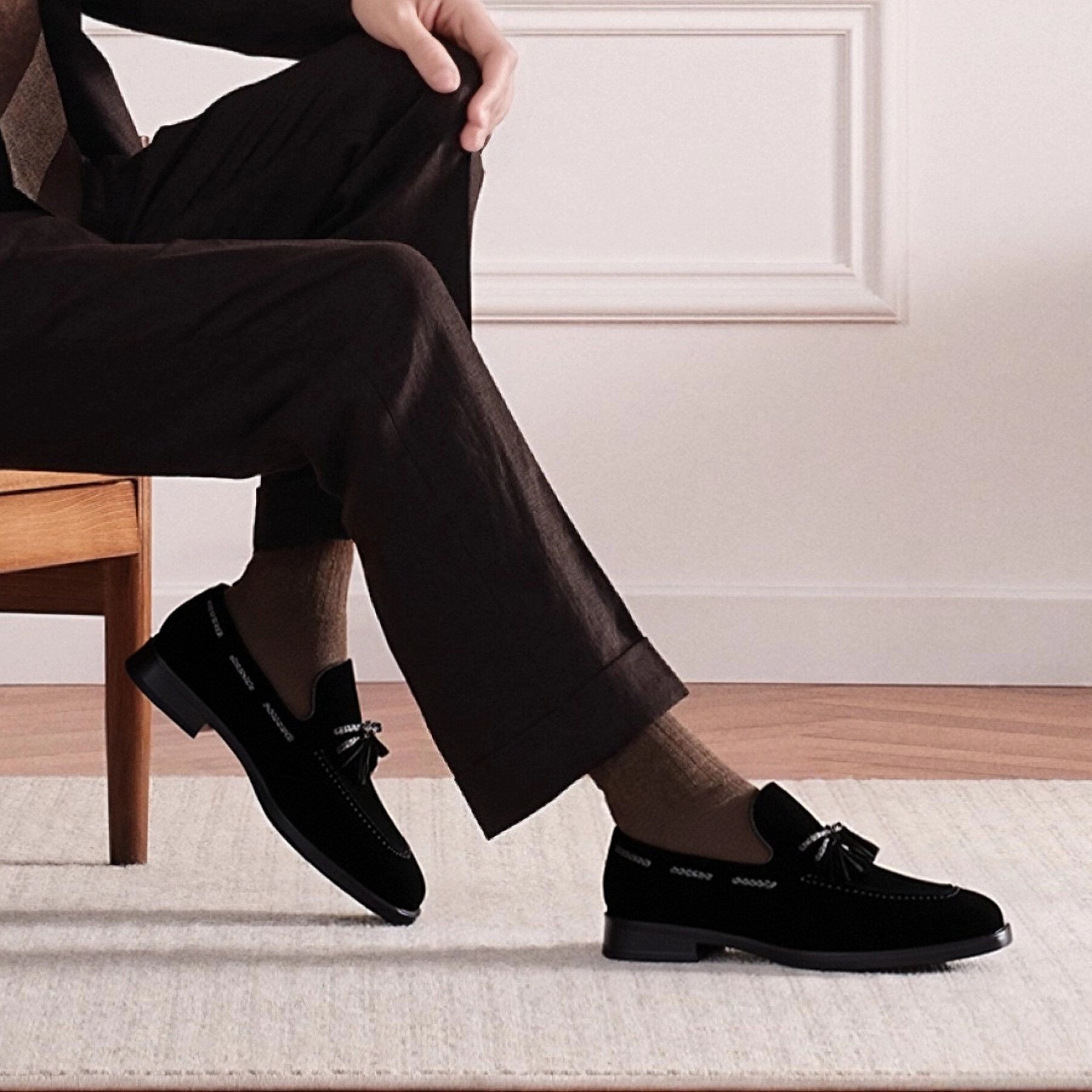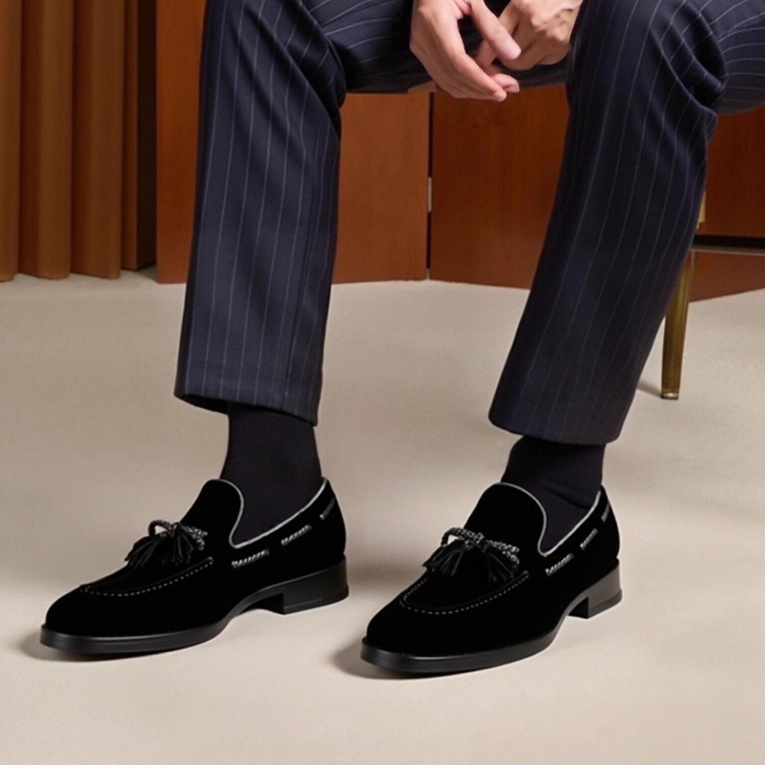 新款男士商务皮鞋琴底铜头纯手工磨砂皮套脚一脚蹬流苏乐福小皮鞋 - 洛玛缇克品牌直销店