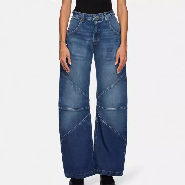 Women patchwork jeans straight leg, extended pants拼接牛仔裤