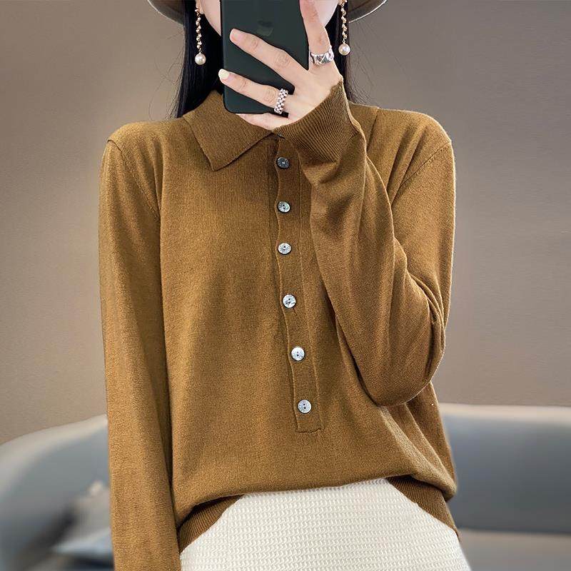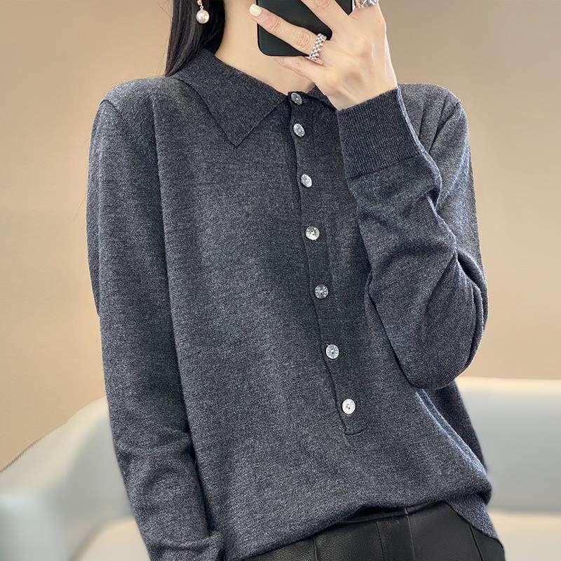 POLO领精纺羊毛衫女士24春秋新款开衫衬衣外套上衣显瘦纯色针织衫 - Muran Yan燕木冉羊绒馆