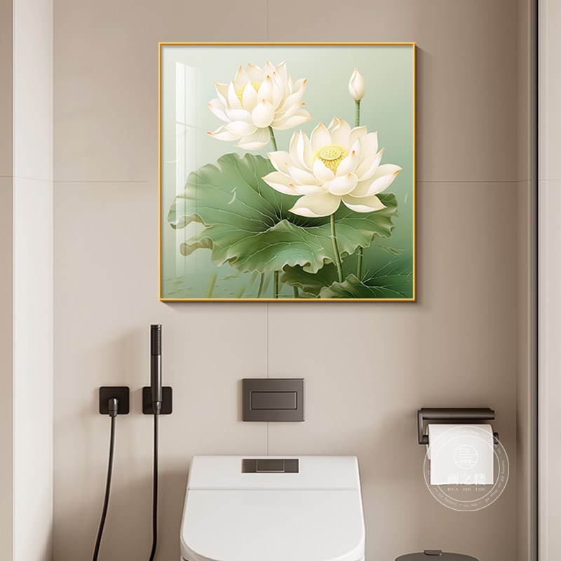 和气生财现代卫生间装饰画厕所荷花净秽挂画正方形高级感壁画 - 流萤追月优选