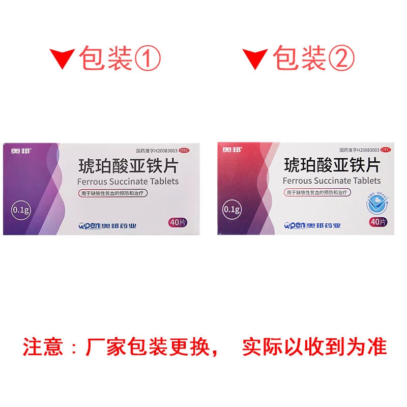 奥邦 琥珀酸亚铁片 0.1g*40片/盒 缺铁性贫血 - 都会好大药房旗舰店