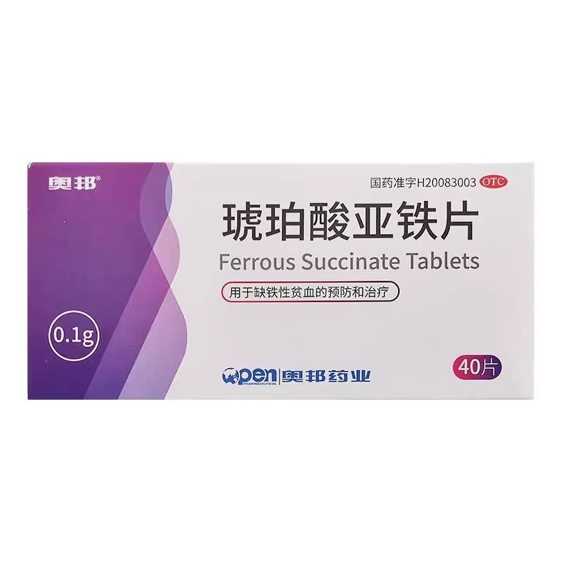 奥邦 琥珀酸亚铁片 0.1g*40片/盒 缺铁性贫血