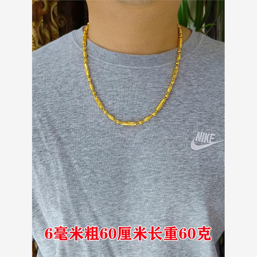 沙金镀金假黄金链子仿金项链不掉色六角棱形竹节橄榄圆珠空心男女 - 金碧辉煌9