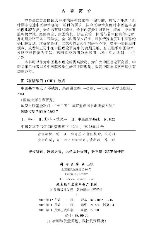 您的位置:他他商城  >   >  中医基本理论 第二2版 邓铁涛 吴弥漫 国医大师临床研究丛书 中医入门初学理论中医基础理论 书籍 科学出版社 9787030423627
