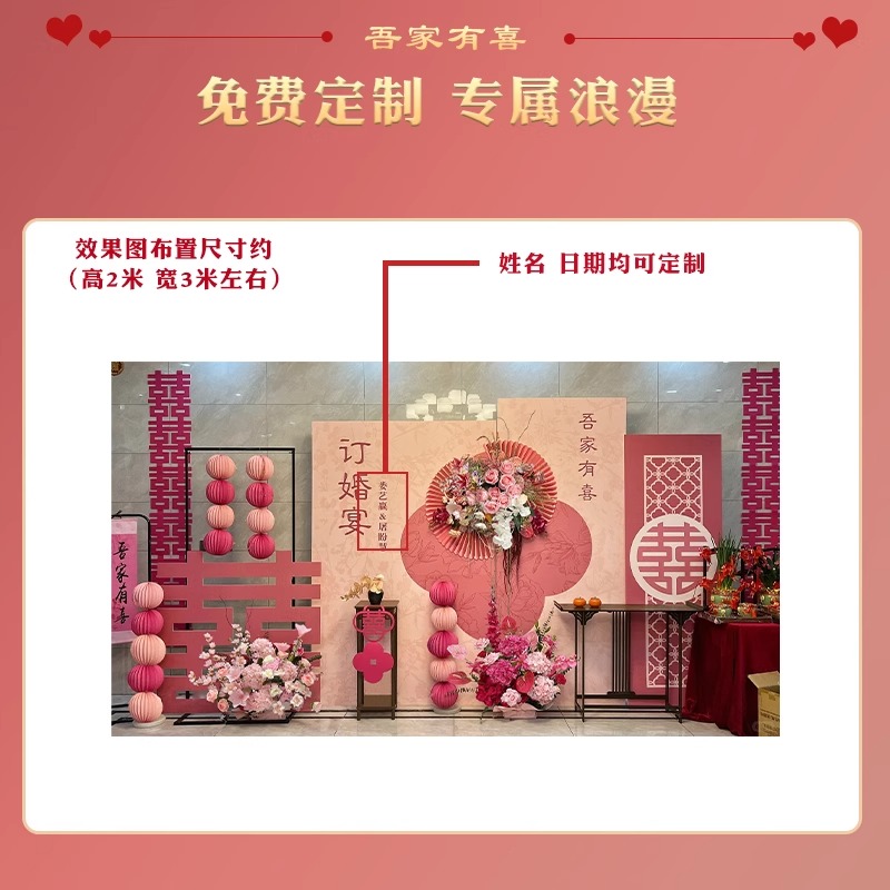 订婚布置装饰全套背景板高级背景墙kt板粉色订婚场景摆件套餐全套 - 喜成亲旗舰店