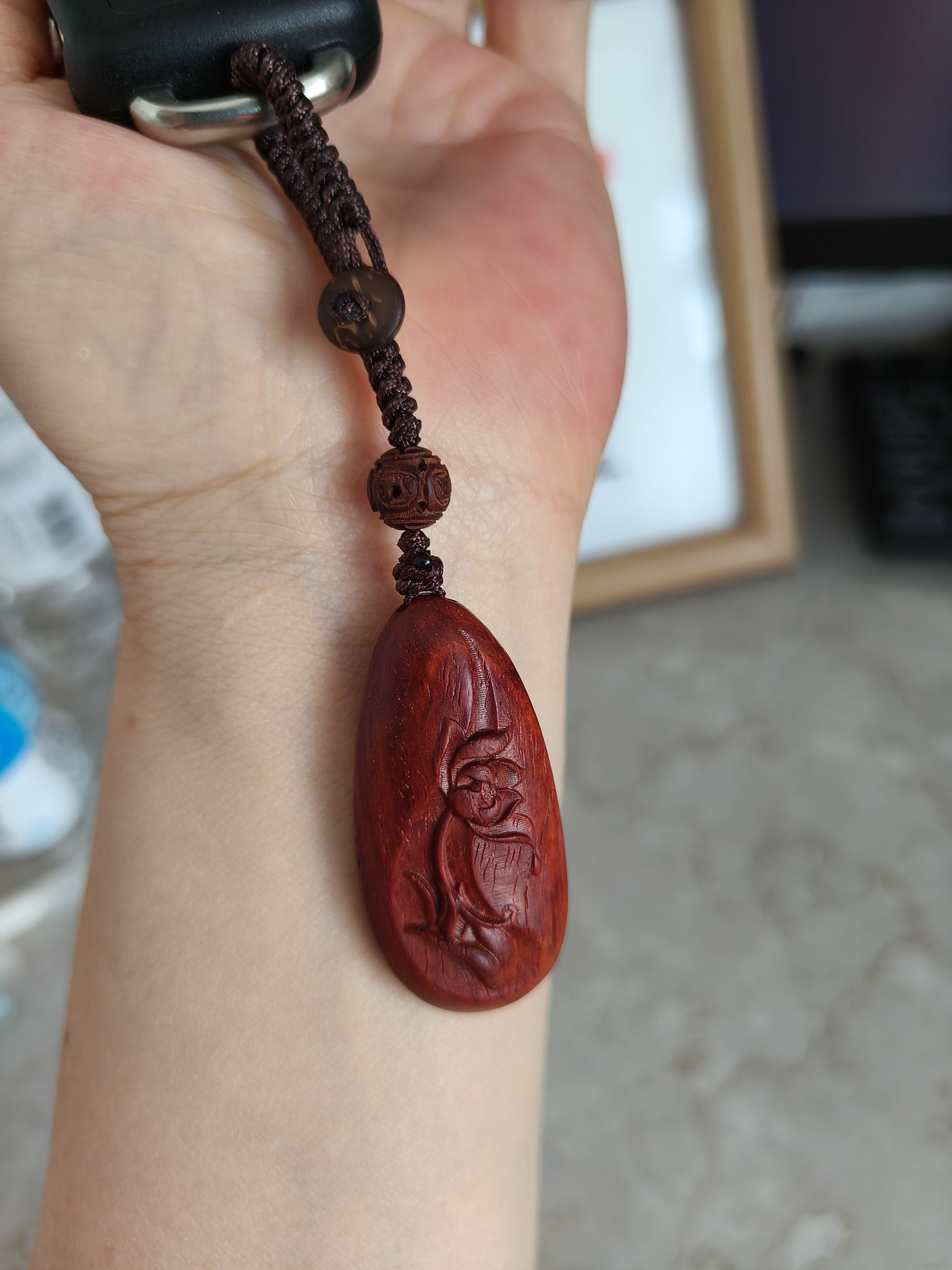 天然印度小叶紫檀木手捻莲花水滴钥匙扣挂件儿财源滚滚好运连连 - 木石福缘 小叶紫檀原创饰品