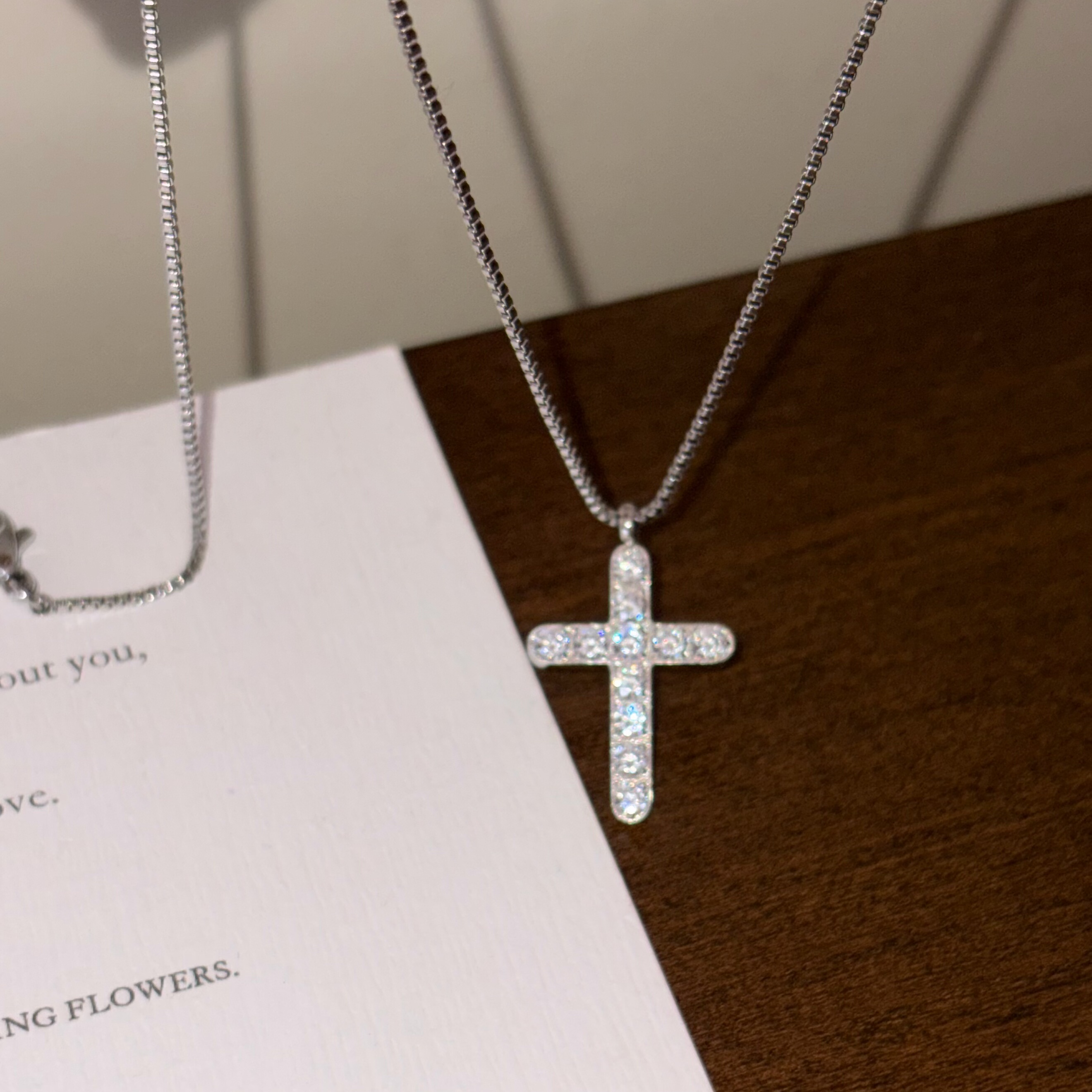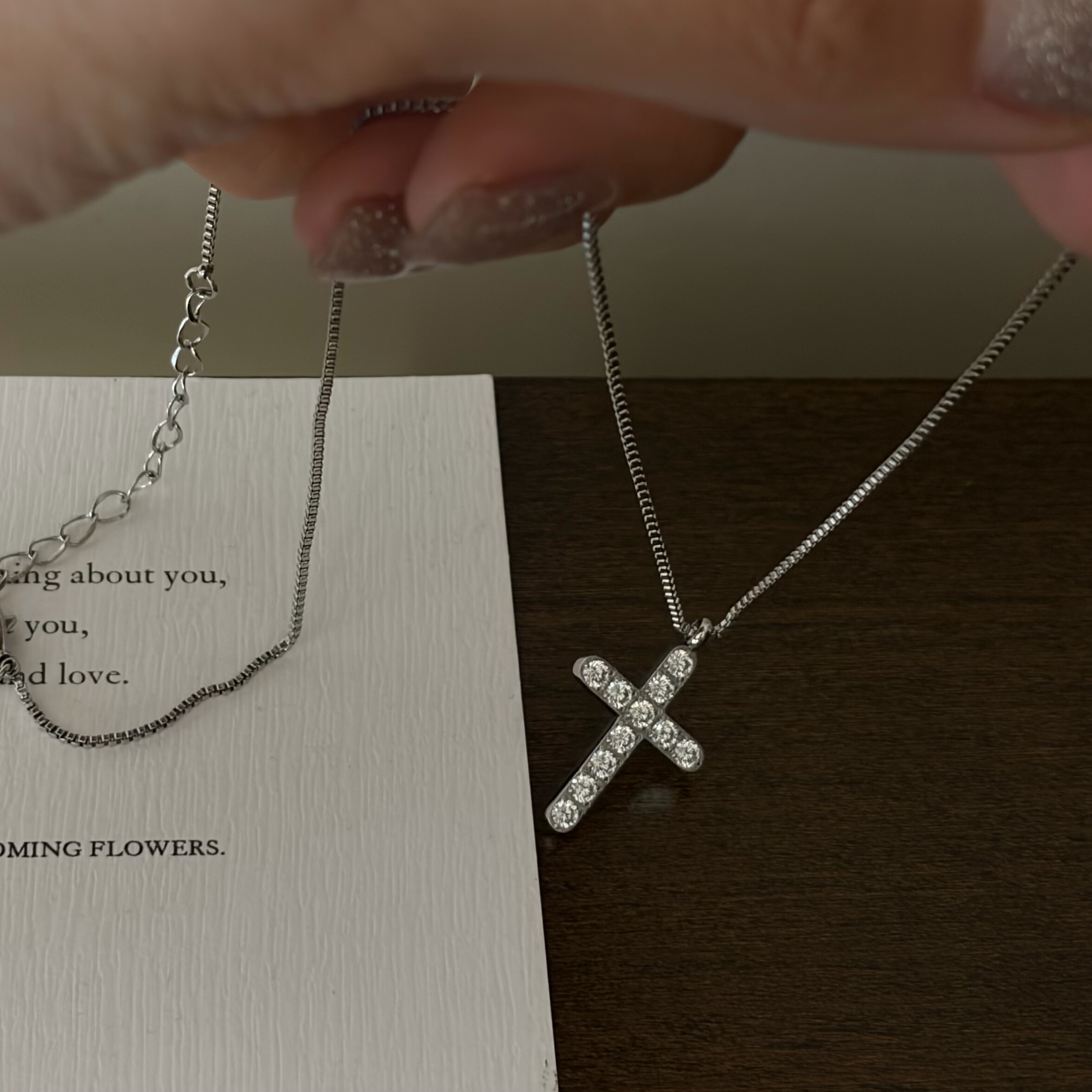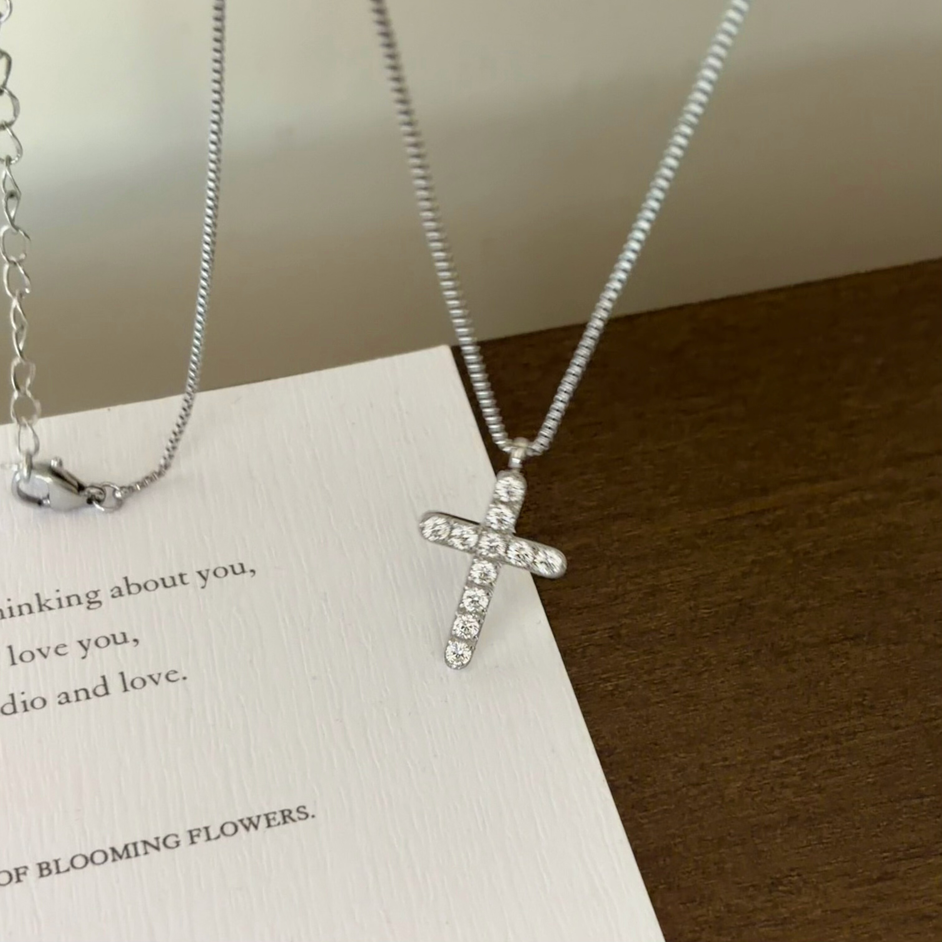 您的位置:他他商城  >   >  734钛钢不掉色微镶十字架项链亮晶晶锁骨链女小众高级欧美白金色