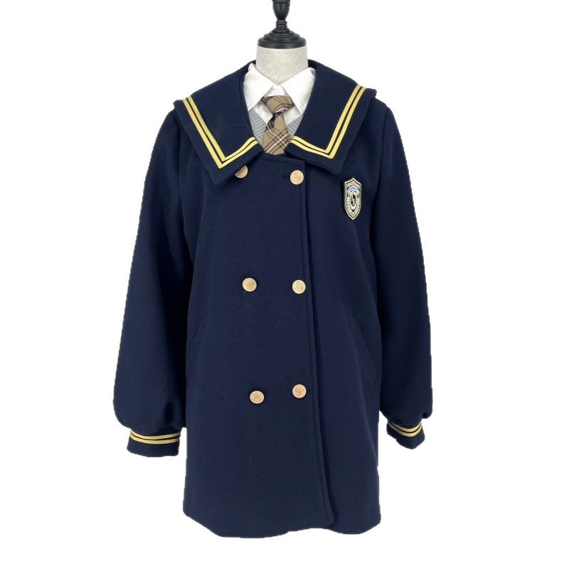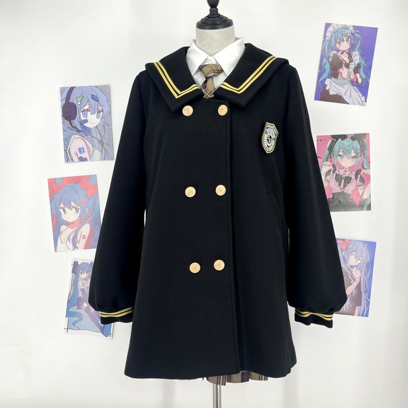 您的位置:他他商城  >   >  原创秋冬中长款双排扣水手领大衣日系学院风JK制服甜妹风毛呢外套