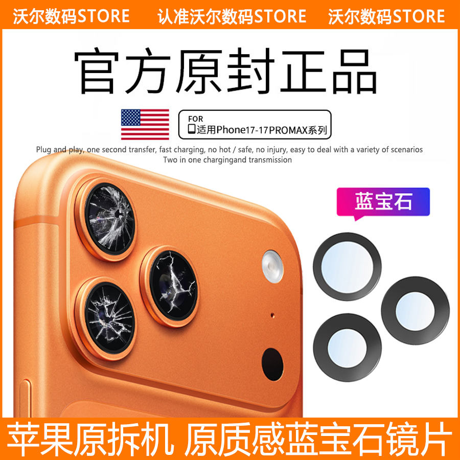 适用苹果17pro后摄像头玻璃17p镜头镜片max原装iphone17镜面17Air - 沃尔数码旗下