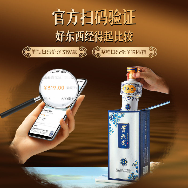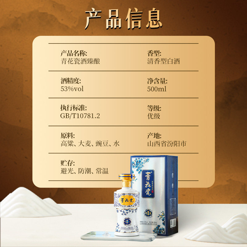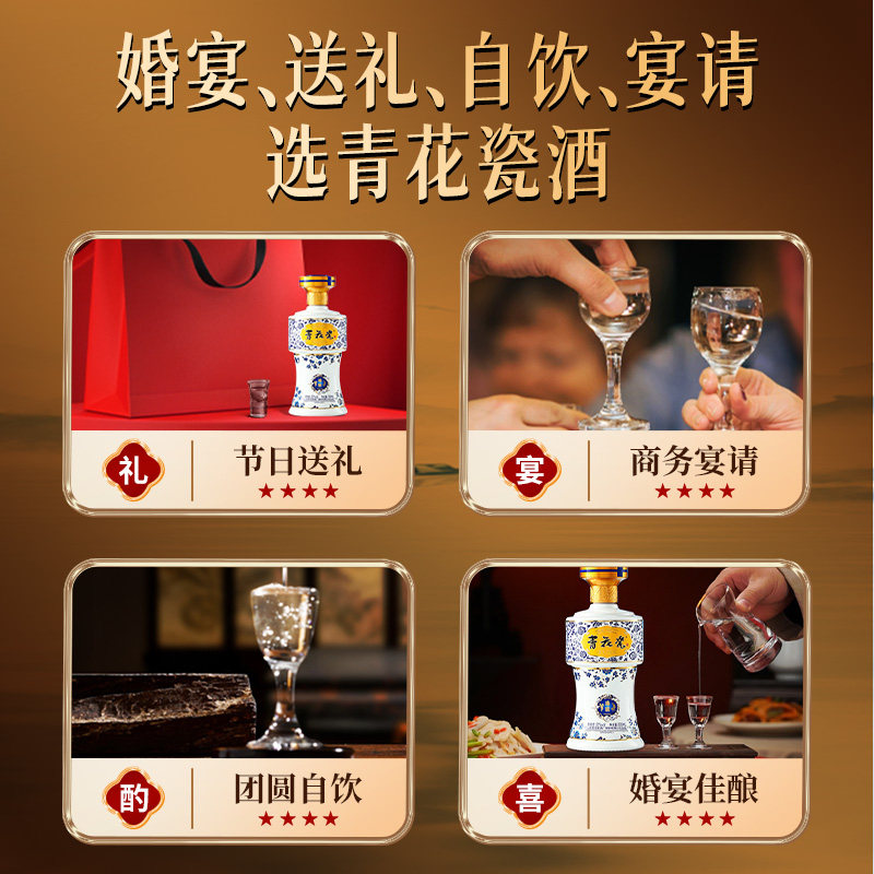 杏花村青花瓷臻酿53度清香型白酒整箱纯粮食酒水口粮酒宴请送礼 - 青花瓷酒类旗舰店