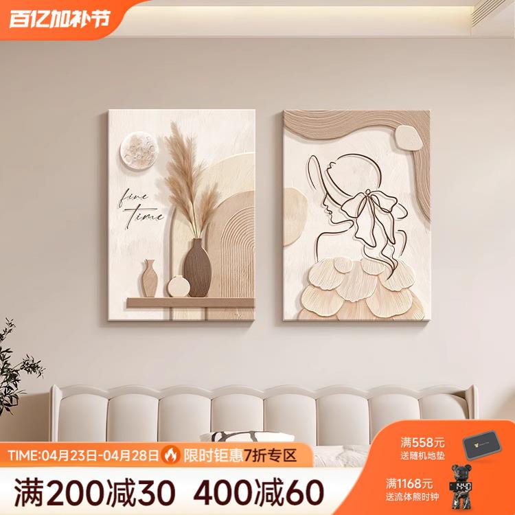 奶油风卧室床头装饰画高级感抽象线条人物挂画简约原木风组合壁画 - yriyrhvspr的小店