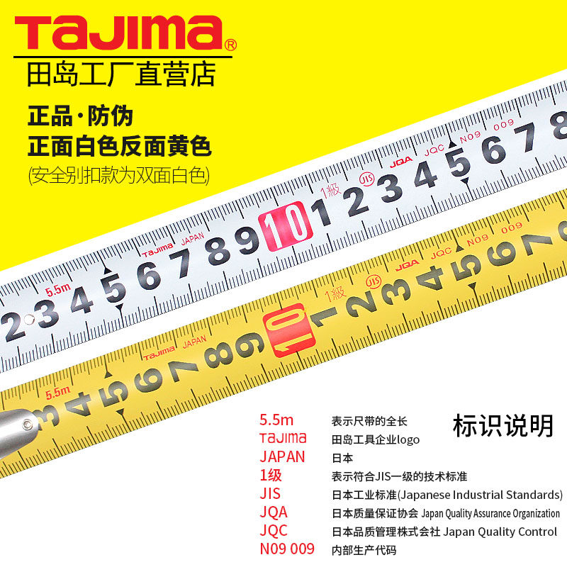 日本田岛公制钢卷尺3.5米5米尺子高精度双面加厚耐磨正品尺带盒尺 - 田岛工具吉峰店
