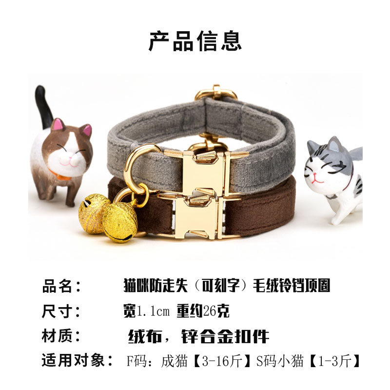 猫咪项圈铃铛猫链猫毛绒刻字颈圈可调节幼猫可爱项链宠物用品 - 博士奇宠物用品