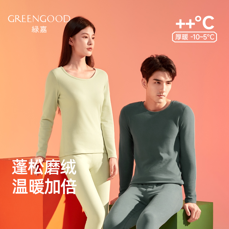 绿嘉秋冬情侣保暖内衣女莱赛尔棉男秋衣秋裤加厚磨毛棉毛衫打底衣 - 绿嘉尚品