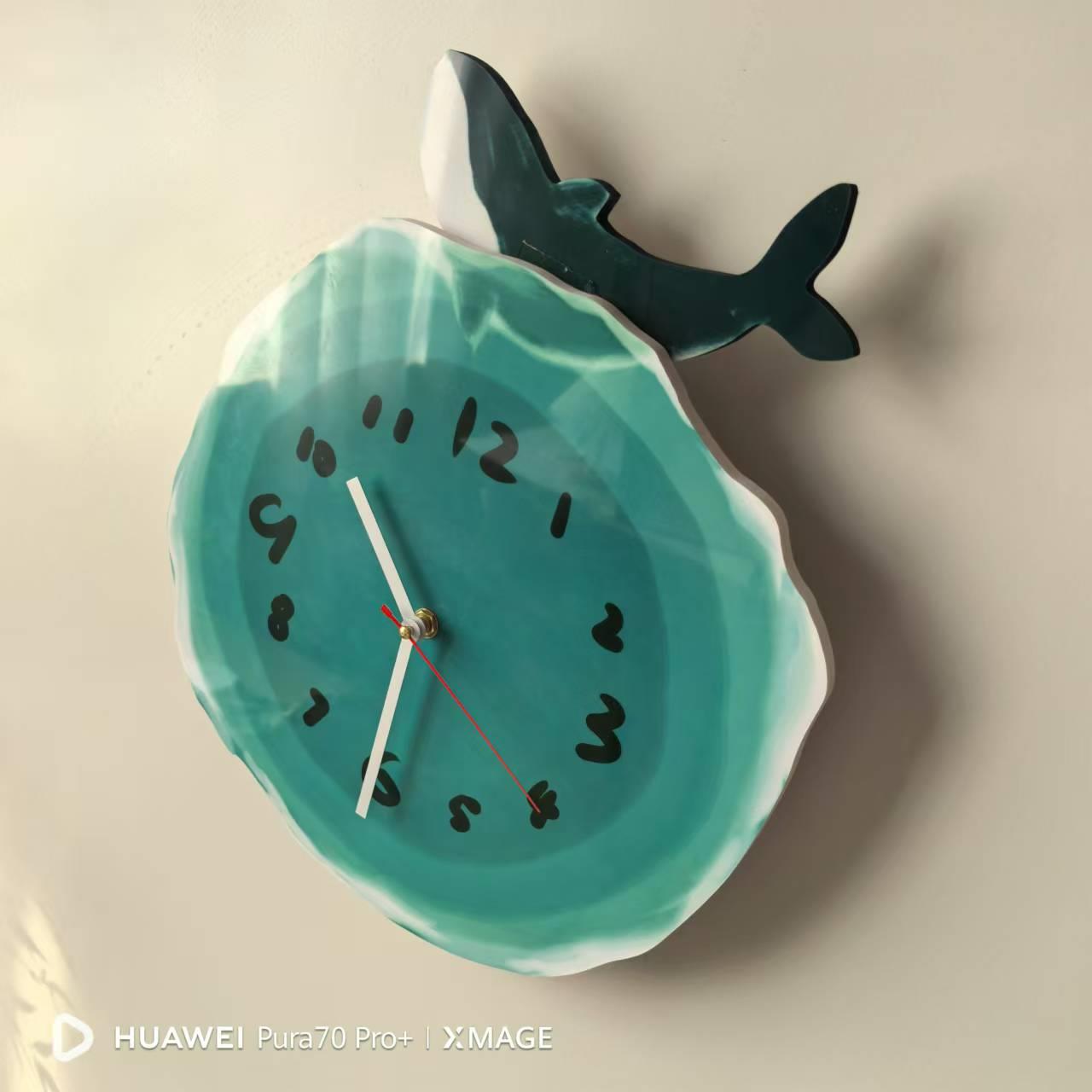 您的位置:他他商城  >   >  文艺挂钟治愈系卡通钟表静音挂墙钟蓝色海洋时钟山海经鲸鱼鲲璧钟