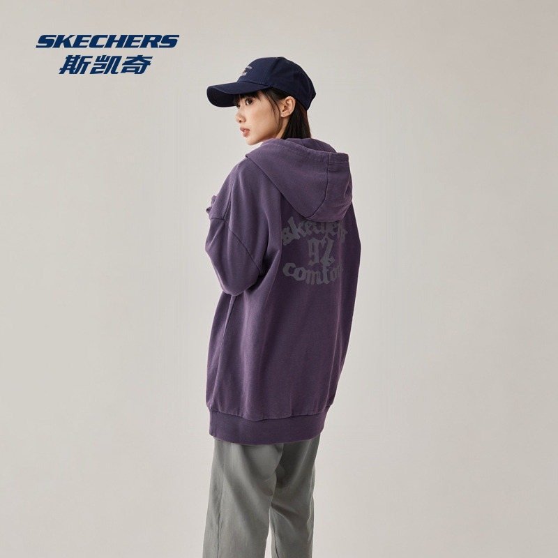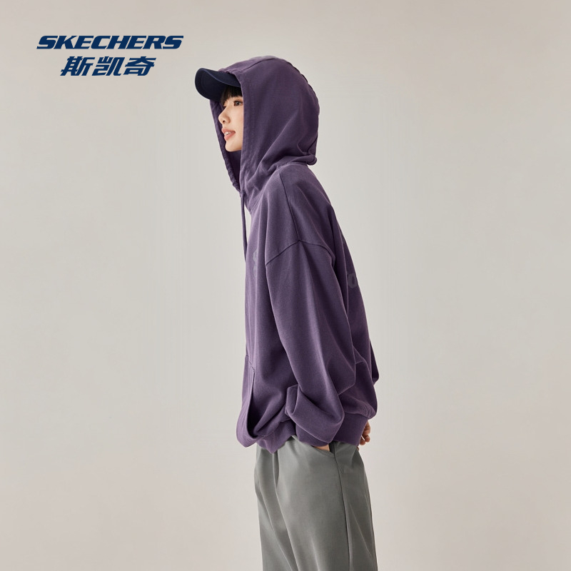 斯凯奇连帽卫衣2025秋季中性款套头宽松舒适实用帽绳标识印花设计 - skechers运动旗舰店
