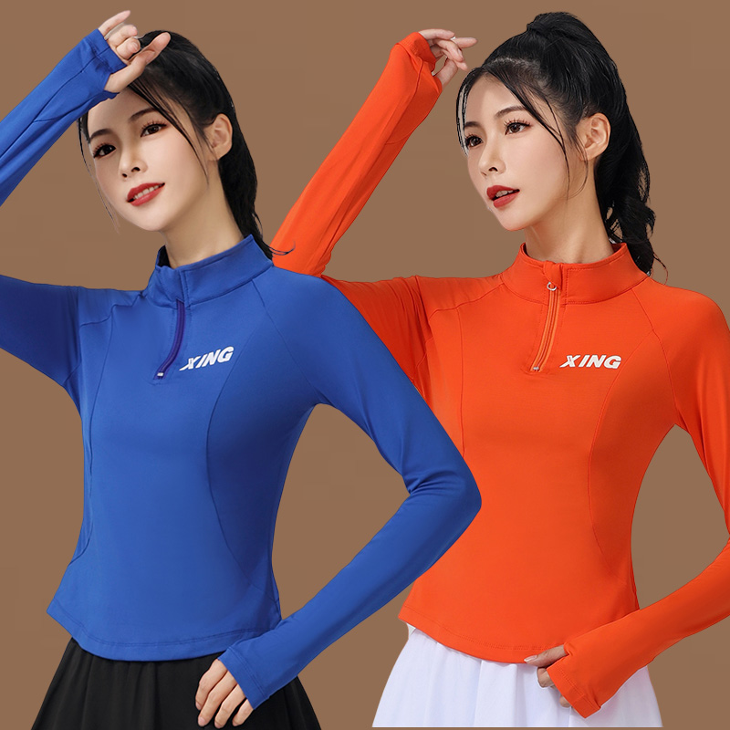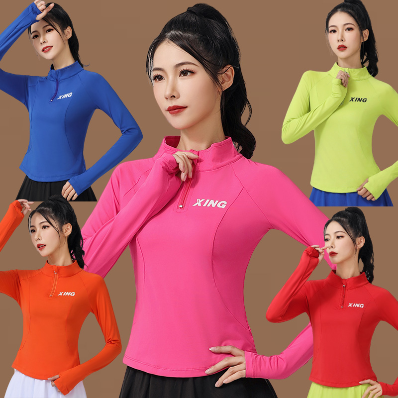 广场舞服装新款速干长袖立领健身操团体跳操上衣跑步运动上衣女 - 艾伊运动健身馆