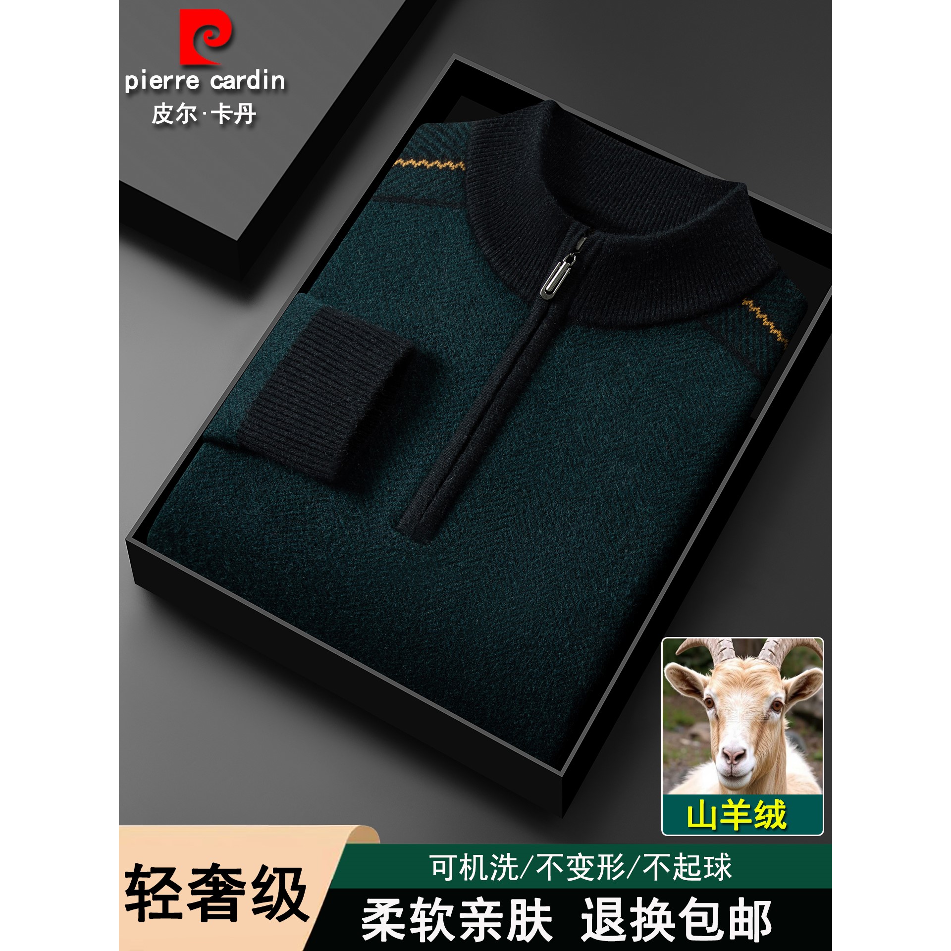 皮尔卡丹羊绒衫男士半高拉链领加厚中老年羊毛衫秋冬季针织毛衣男 - 精品服饰体验馆