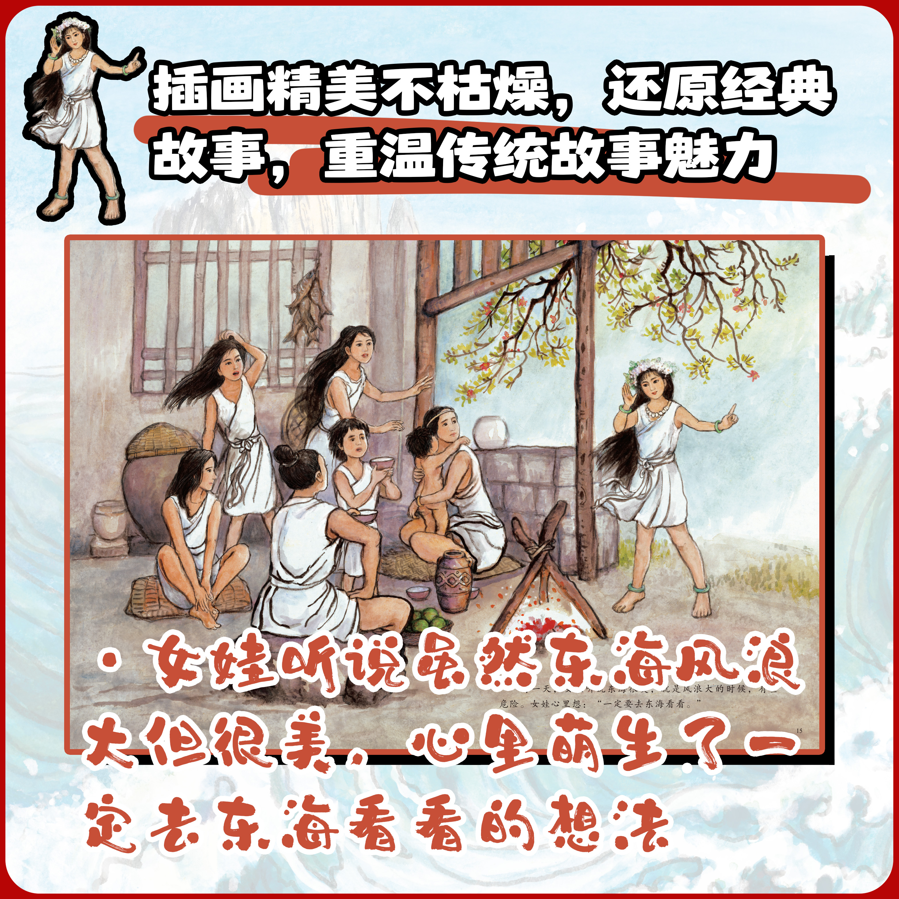 儿童版中国传统故事美绘本-精卫填海 儿童启蒙励志读物睡前故事书 - 炫彩童书图书旗舰店