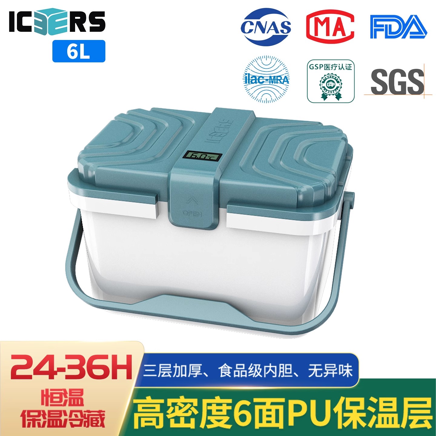 艾森斯(icers)专业6L保温箱药品冷藏母乳冷冻生物试剂运输干冰箱 - icers户外旗舰店