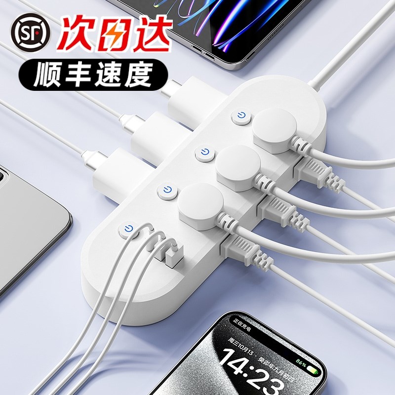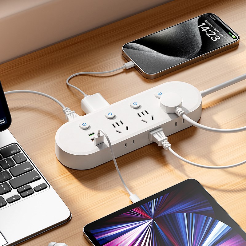 米系插座多功能面板多孔USB快充家用插排延长线插线X板列宿舍插板