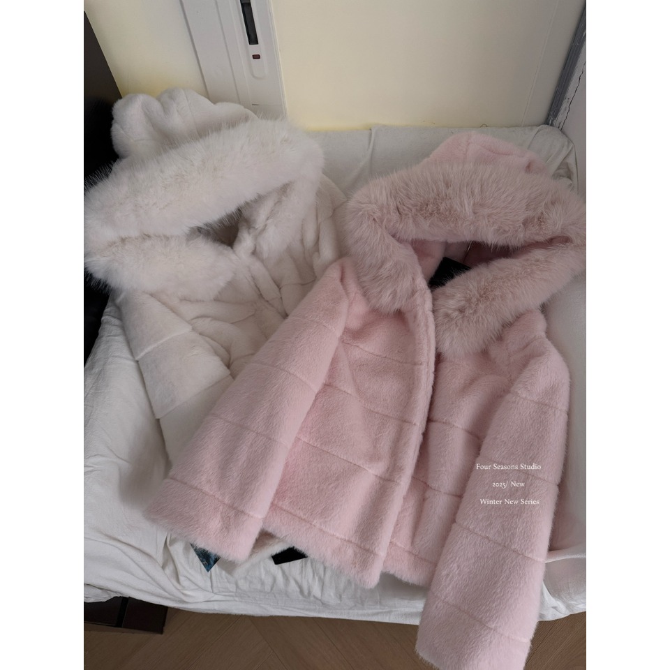 kubiliv娇娇貂定染连帽中长款环保仿貂皮草氛围感毛毛外套女 - 芊芊美女装