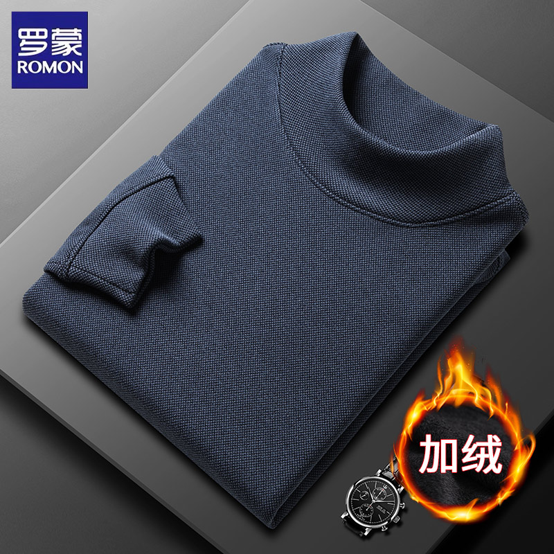 罗蒙德绒半高领男士卫衣长袖t恤秋冬季商务休闲加绒保暖打底衫 - 罗蒙优简精选店