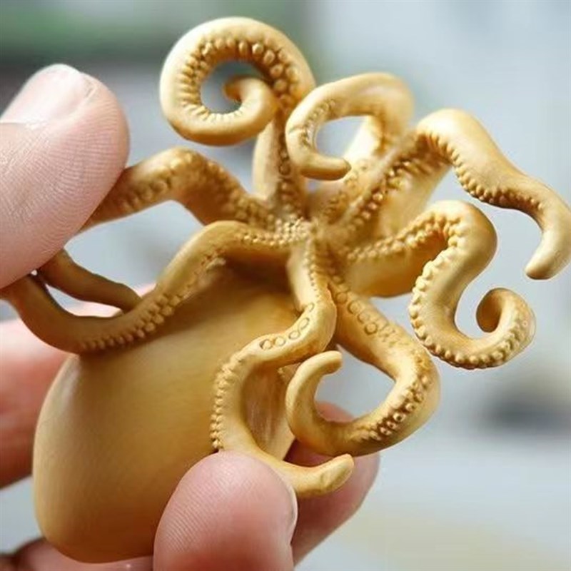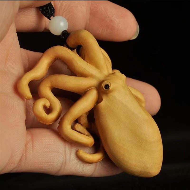 速发太行崖柏八爪鱼实木雕刻章鱼哥手料件文件挂玩老把创意可爱工 - 希特亦户外批发