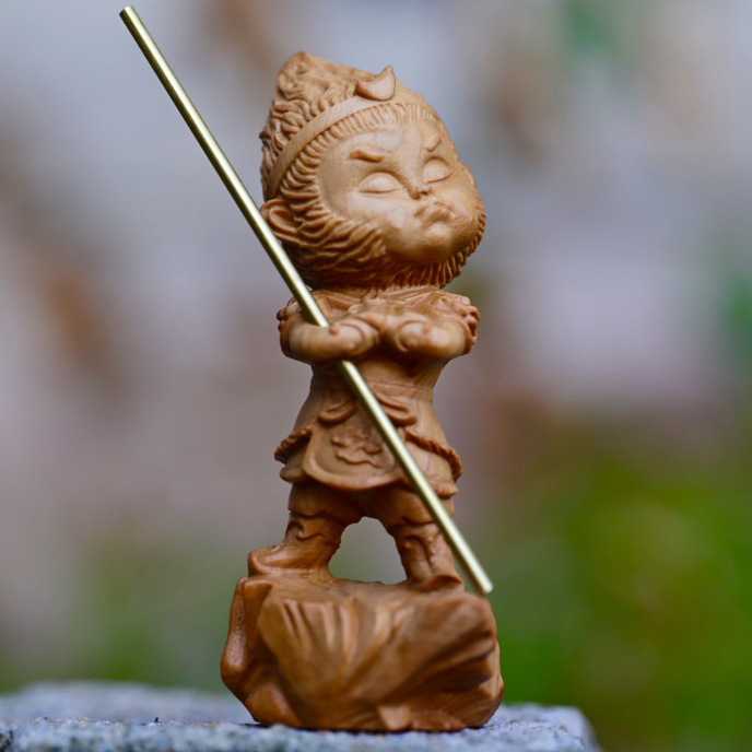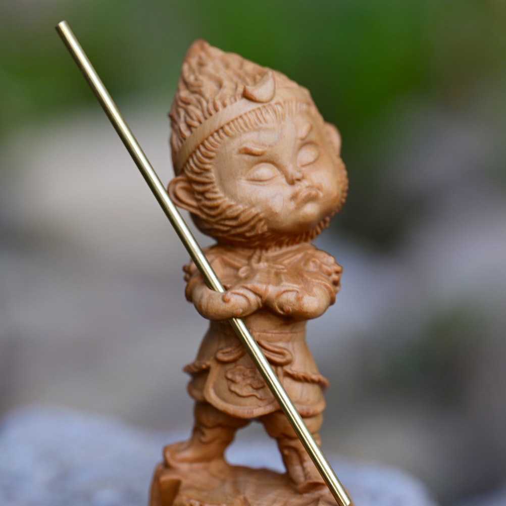 新款直销崖柏木雕傲娇小悟空汽车装饰摆件实木雕刻齐天大圣美猴王 - 欣彦百商贸