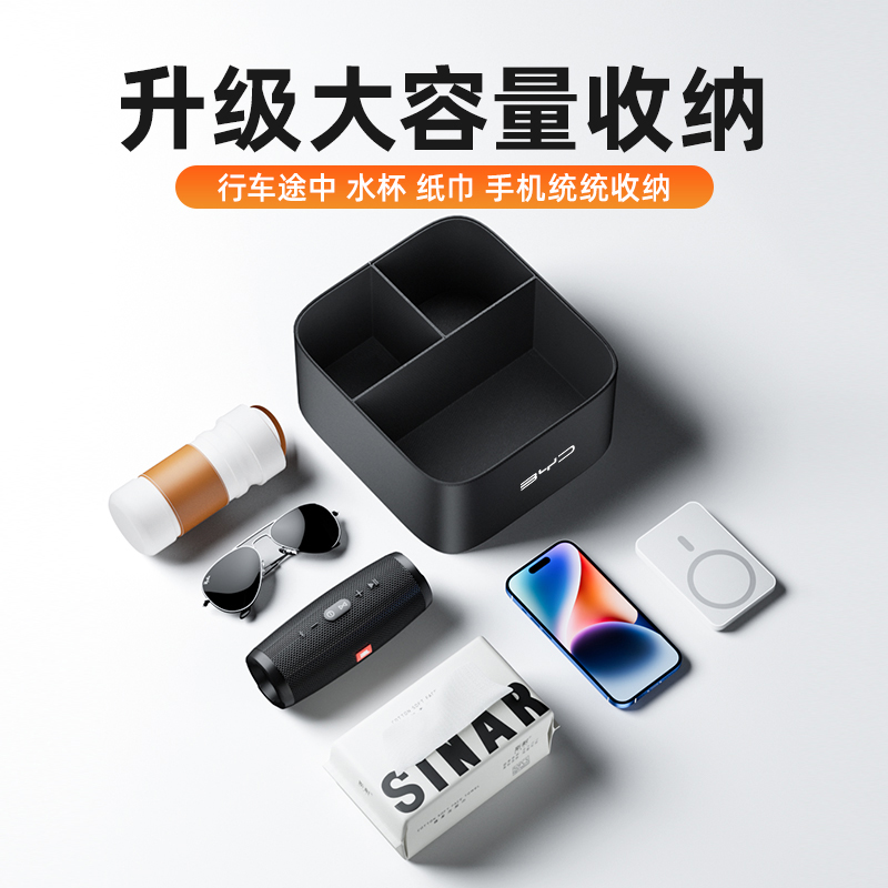 比亚迪车载扶手箱收纳盒海鸥汉秦宋plus汽车抽纸盒内饰用品水杯架 - 伍帅吉锐专卖店