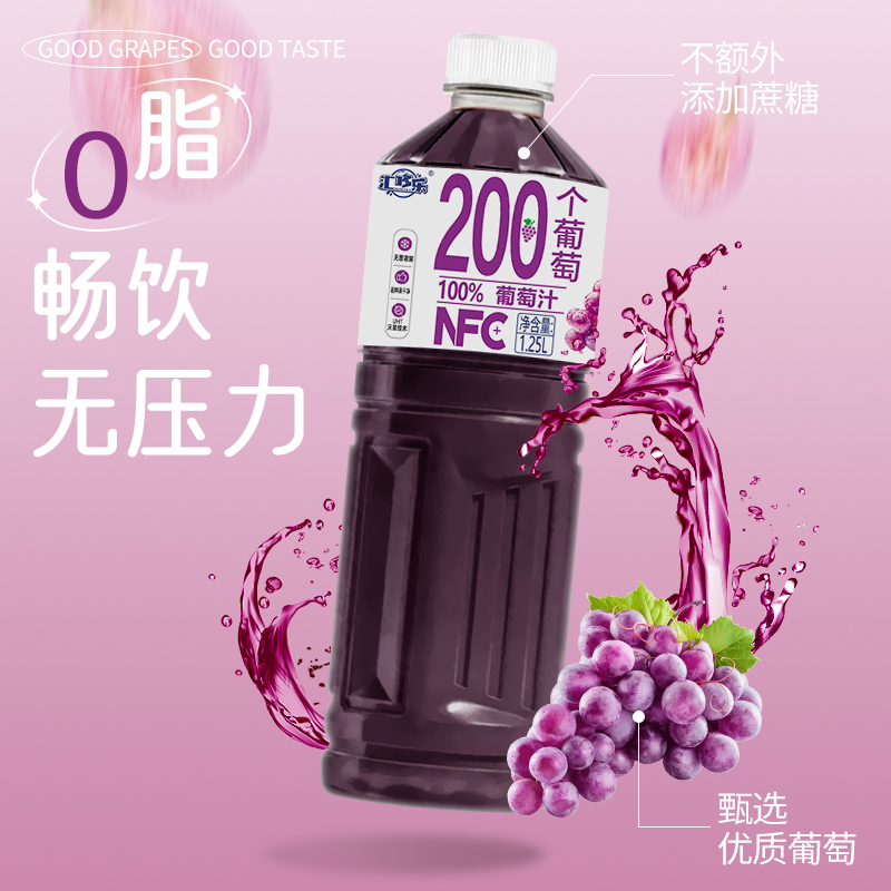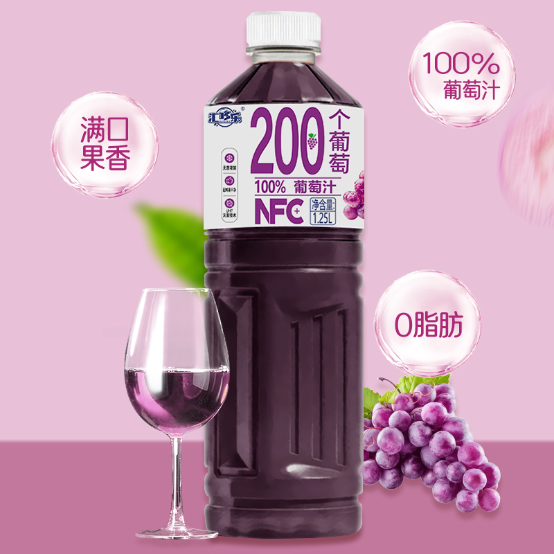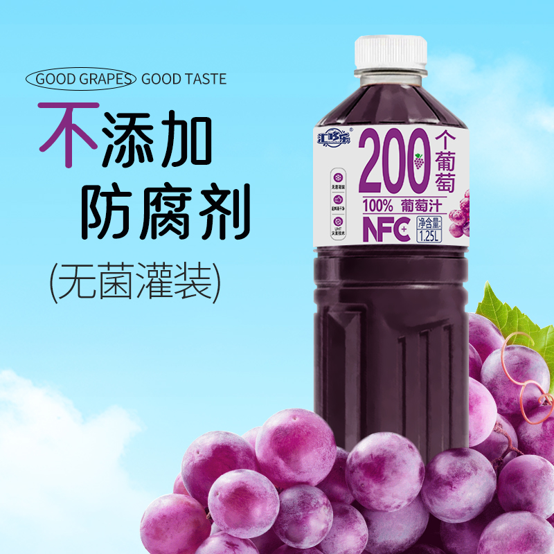 100%葡萄汁1.25L*2大瓶家庭聚会好喝饮品0防腐剂0色素新日期直发 - 汇哆乐饮品厂家店