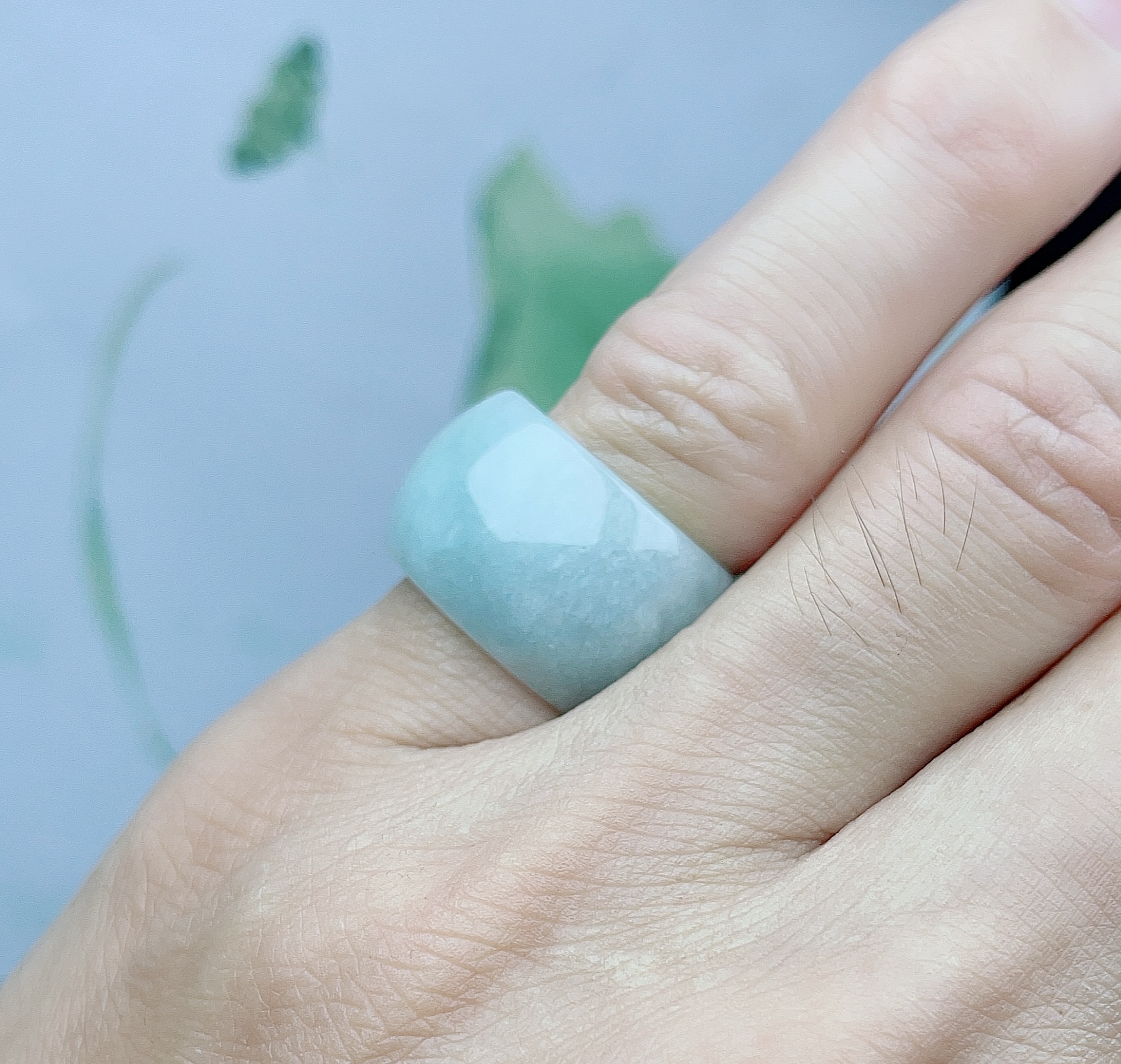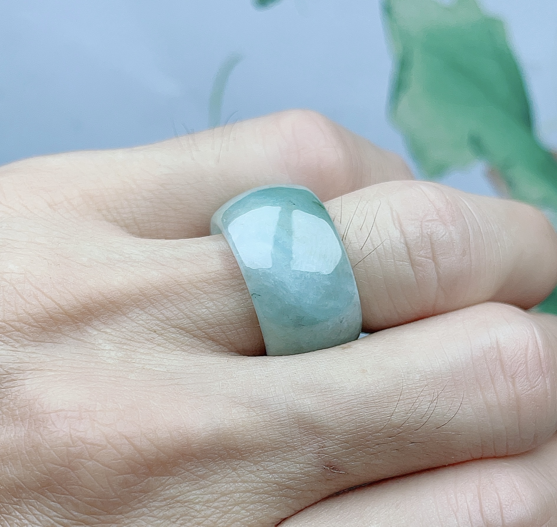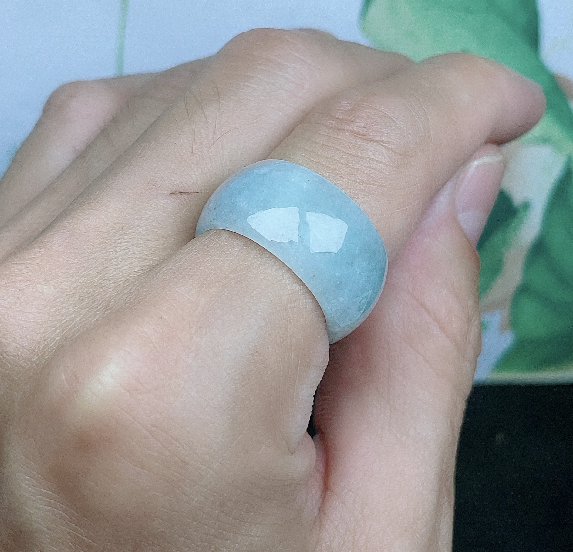 天然A货翡翠浅绿鼓型扳指宽边圆面戒指跑环指环可拍图挑选 - 四会忠贤珠宝店