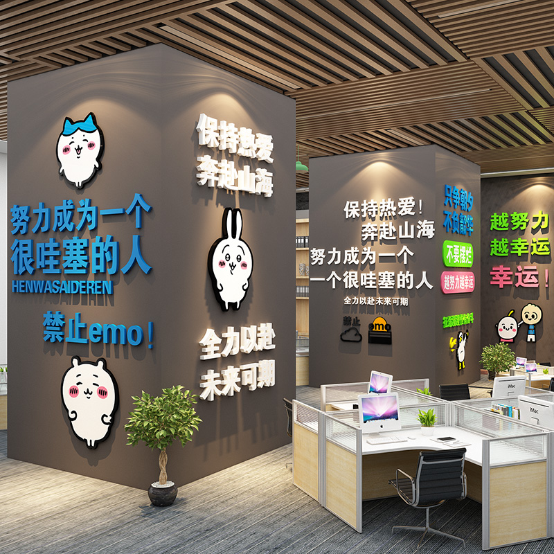 办公司室墙面装饰氛围布置企业文化进门形象柱子自习励志标语贴纸 - 墙上鲤旗舰店