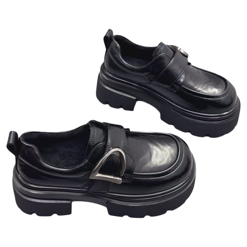 真皮女鞋小个子增高6CM加绒英伦风小皮鞋2025冬新款魔术贴乐福鞋 - 真皮女鞋品质店 高端潮流原创设计
