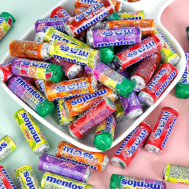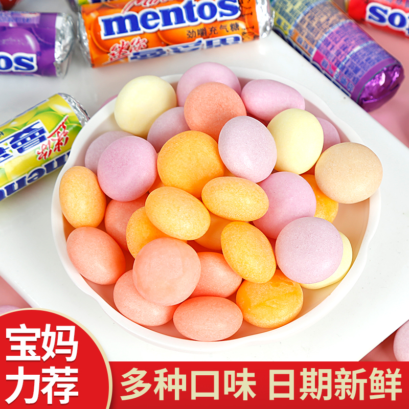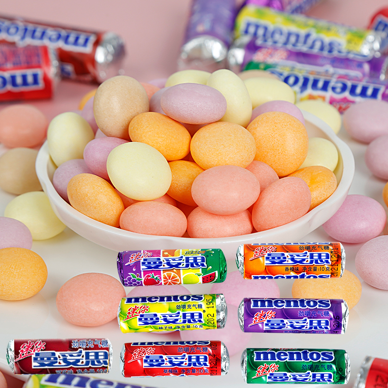 曼妥思充气糖迷你卷可乐草莓葡萄果味彩色混装休闲零食霓虹气泡糖