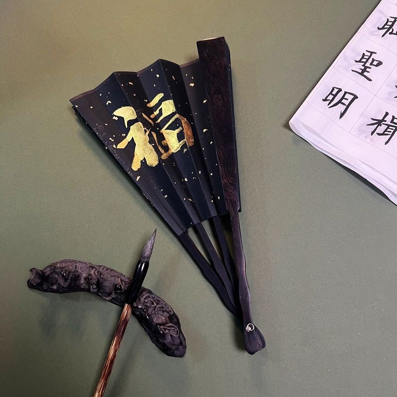 10寸乌木扇子紫光檀木中国风男空白宣纸J文玩折扇古风送礼夏工艺 - tb1684612947