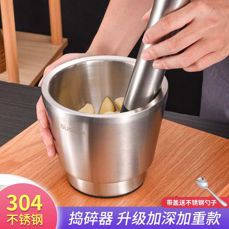 304不锈钢捣碎器家用捣蒜器老式蒜臼子捣药罐手动研磨压蒜器擂钵 - 谷染染餐厨具