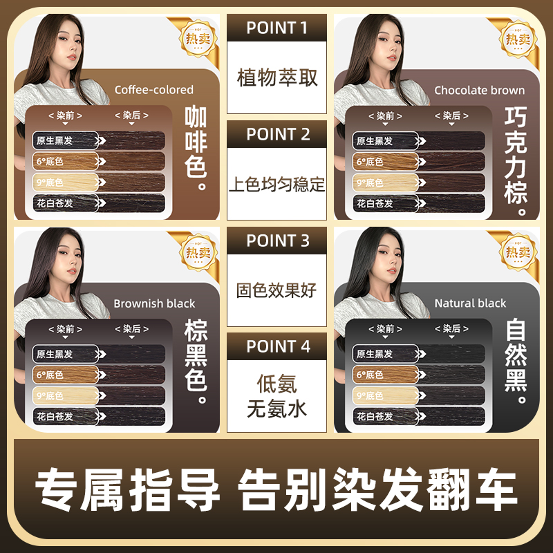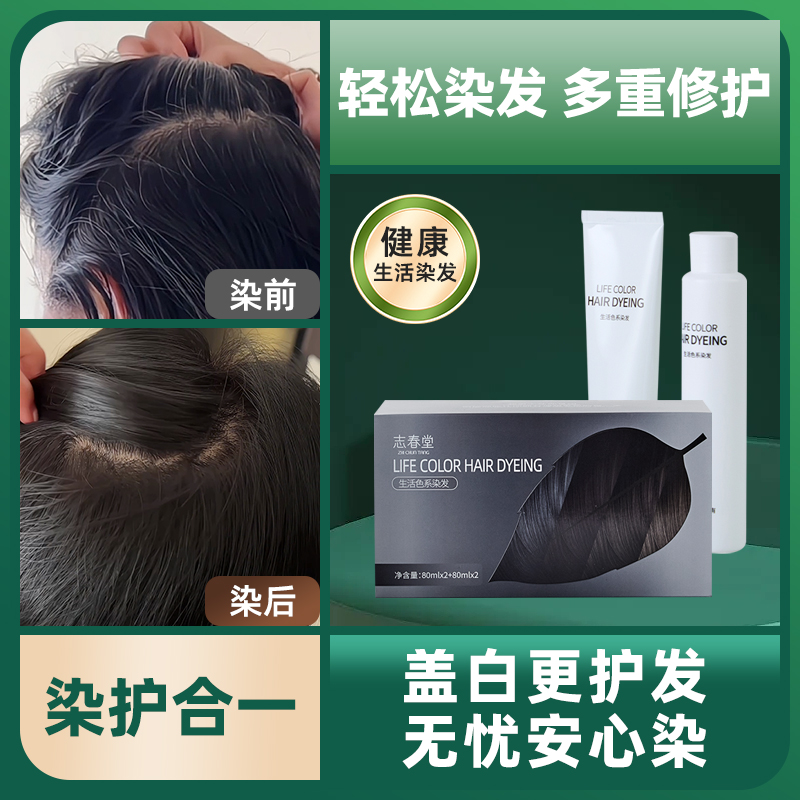 染发膏女正品男士专用自己在家染发自然黑咖啡巧克力棕黑色遮白发 - 志春堂专业美发