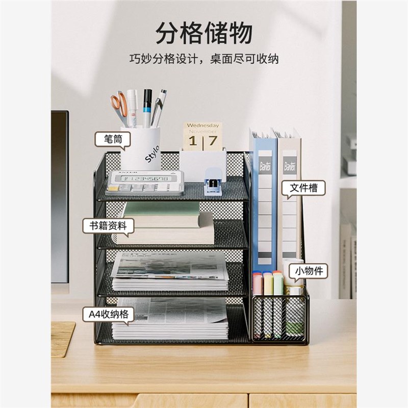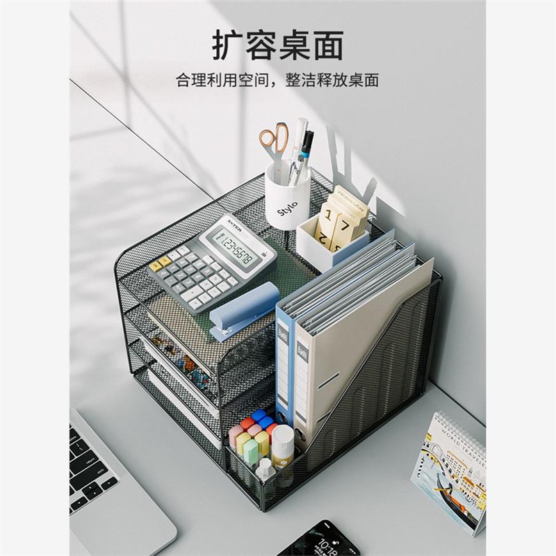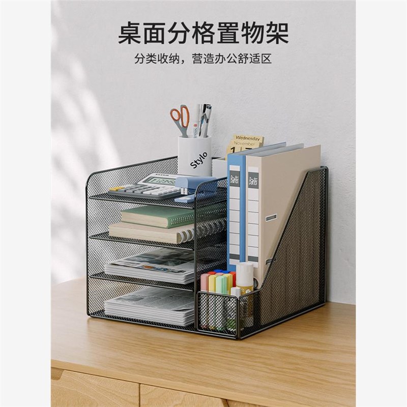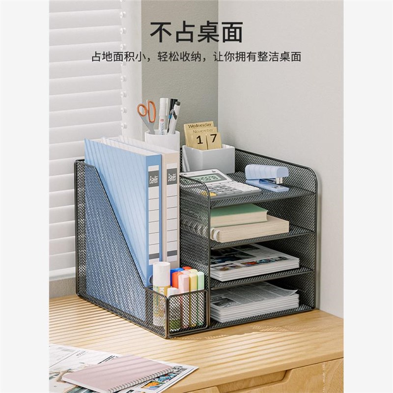 速发桌面文层置物架办公桌文件夹收纳架金属书立文件盒多件档案资 - 英烟商贸