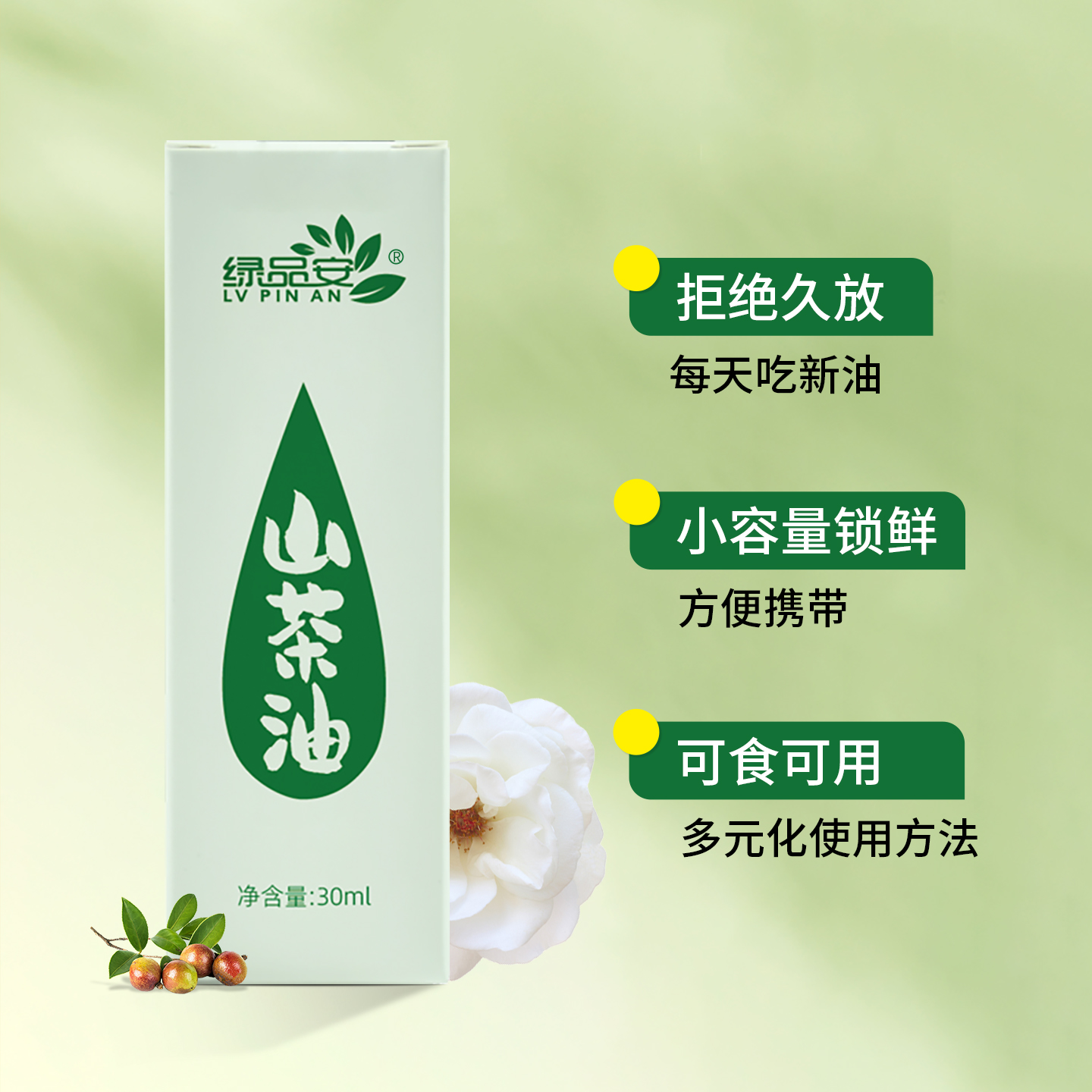绿品安山茶油30ml小瓶野生茶树油农家自榨纯正茶籽油茶油木油涂抹 - 绿品安旗舰店