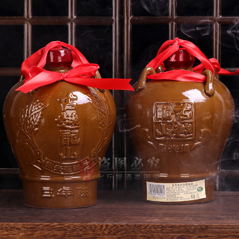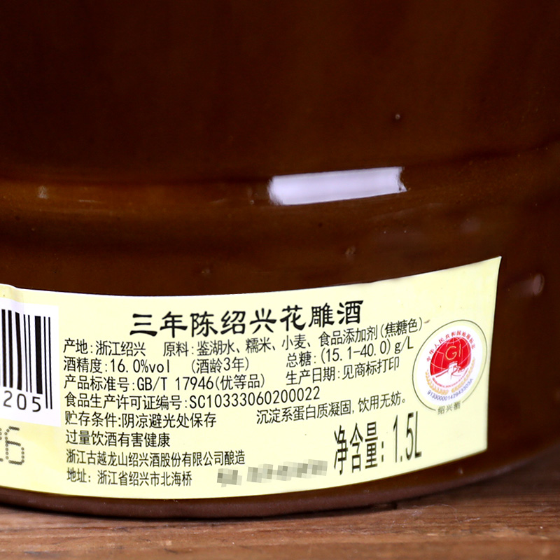 古越龙山绍兴黄酒1.5L陶坛三年陈糯米花雕酒加饭酒16度 3斤装 - 七斤嫂酒类专营店